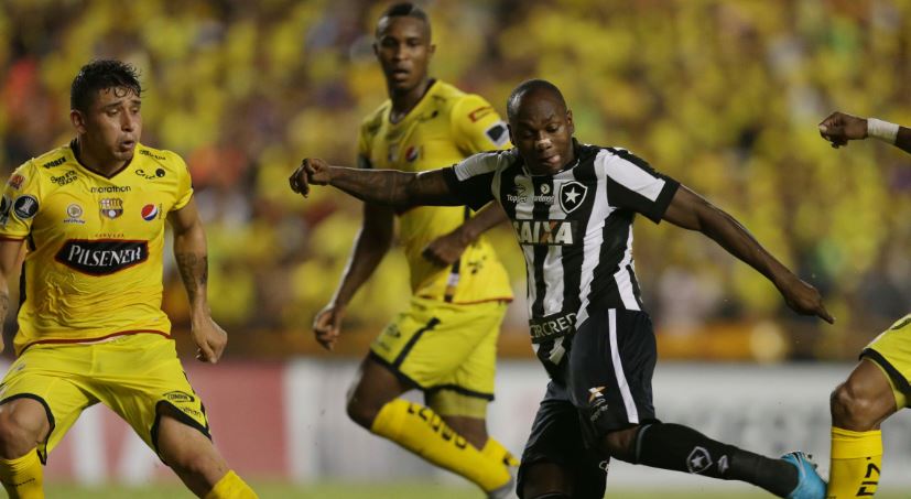 O Botafogo não conseguiu manter o mesmo ritmo na segunda etapa. A primeira boa oportunidade do Alvinegro veio aos 21 minutos, após chute perigoso de Bruno Silva. Aos 34 minutos, o clube equatoriano ficou com um jogador a menos. Após falta dura em Guilherme, Jefferson Mena recebeu o cartão vermelho. Aos 43 minutos, Arreage cortou cruzamento com o braço. O árbitro venezuelano anotou pênalti para o Botafogo. Na cobrança, Sassá deixou tudo igual no Estádio Monumental.