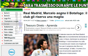 O site TUTTO mercato WEB, da Itália, também destaca o sonho do jogador do Real Madrid em vestir a camisa do Alvinegro.