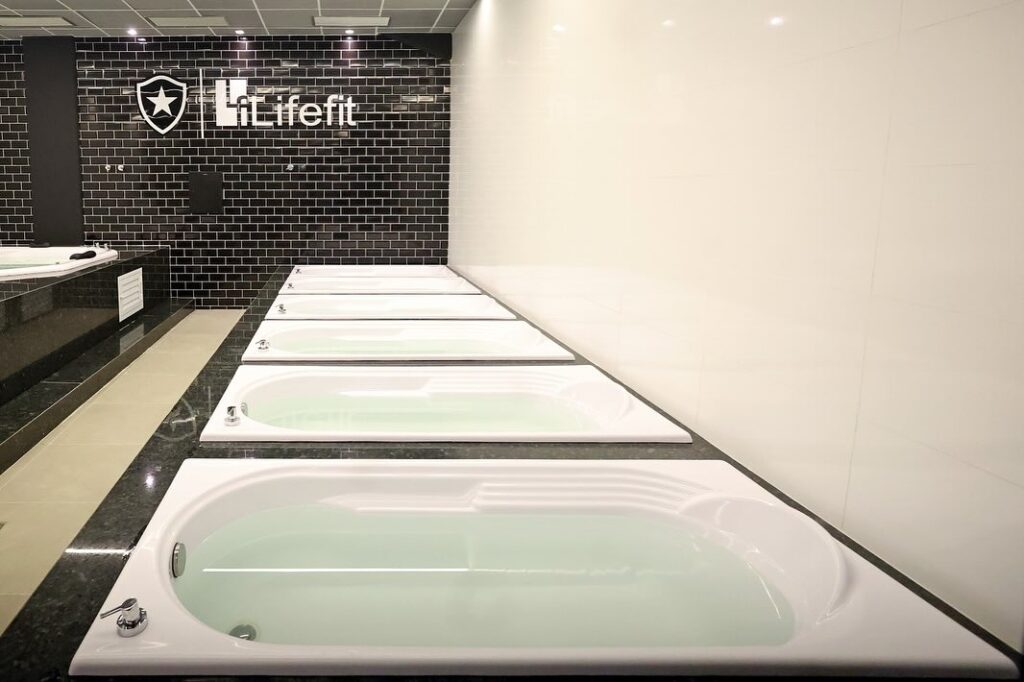 O espaço conta com uma gama de recursos essenciais para a recuperação física: banheiras de hidromassagem para relaxamento muscular, banheiras específicas para crioterapia (tratamento com gelo) para acelerar a regeneração, e uma área dedicada à massoterapia, visando melhorar a mobilidade e promover o relaxamento físico e mental. Toda essa estrutura foi pensada para garantir que os atletas se recuperem de forma mais rápida, segura e em conformidade com os mais altos padrões do esporte de elite.